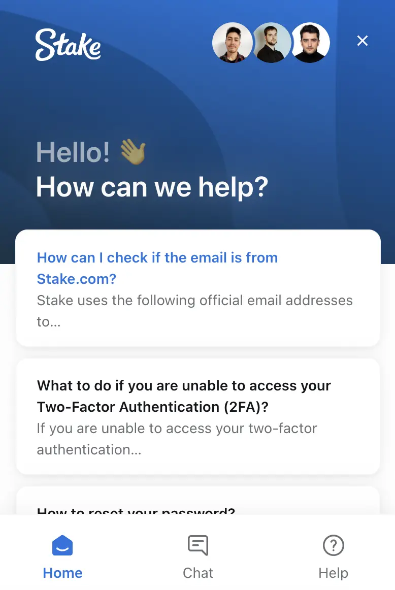 Players can contact our customer support team any time of day or night. The team is professional and trained to give helpful solutions. You can reach them via live chat, email or social media platforms. We are active on social media like Telegram, Facebook and X. you can find our pages there and message us. Casino Stake has a community forum, where you can ask other users your questions. We have a Help Centre where you can get answers about your account, deposits and bonuses.