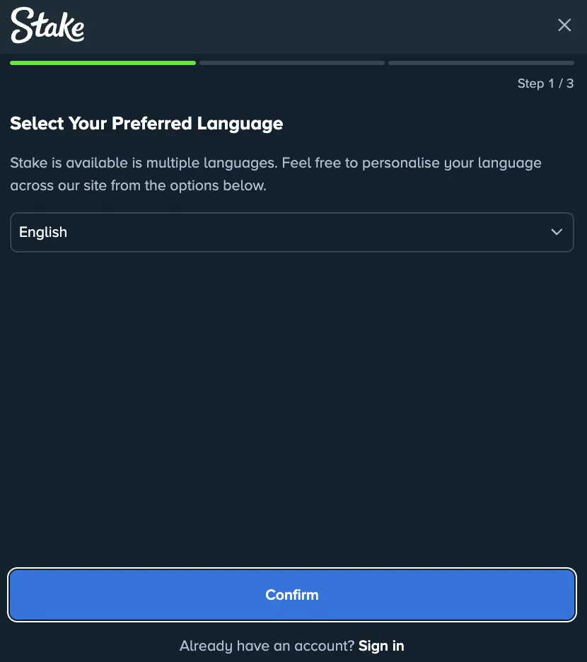 A welcome bonus awaits you immediately after you sign up at Stake online casino. We rarely give information about the sign-up bonus because we don’t have a standard offer. Instead, the amount you get depends on the promo code you use. Here is how to activate your treat: