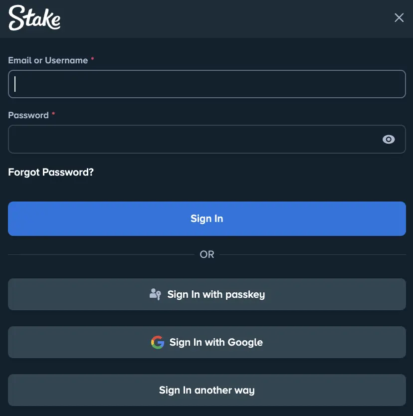 - Enter your Stake login email and password.