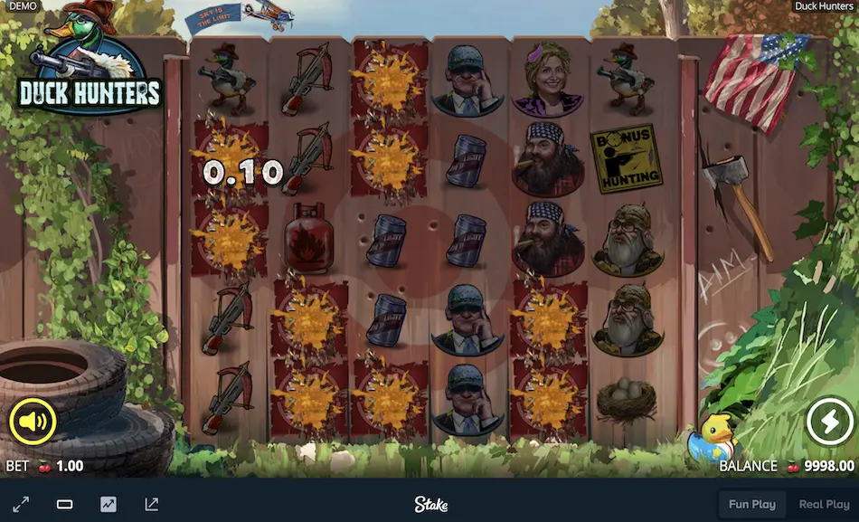 Tap the “Fun Play” button. Familiarise yourself with the interface. You can mute the sound, check the paytable and view your balance. For instance, Big Bass Rock and Roll comes with EUR 100,000 virtual coins. Set your bet and tap the spin button. Pick other Stake slot machines and have fun exploring their different features. Remember, you have enough virtual money to experiment with.