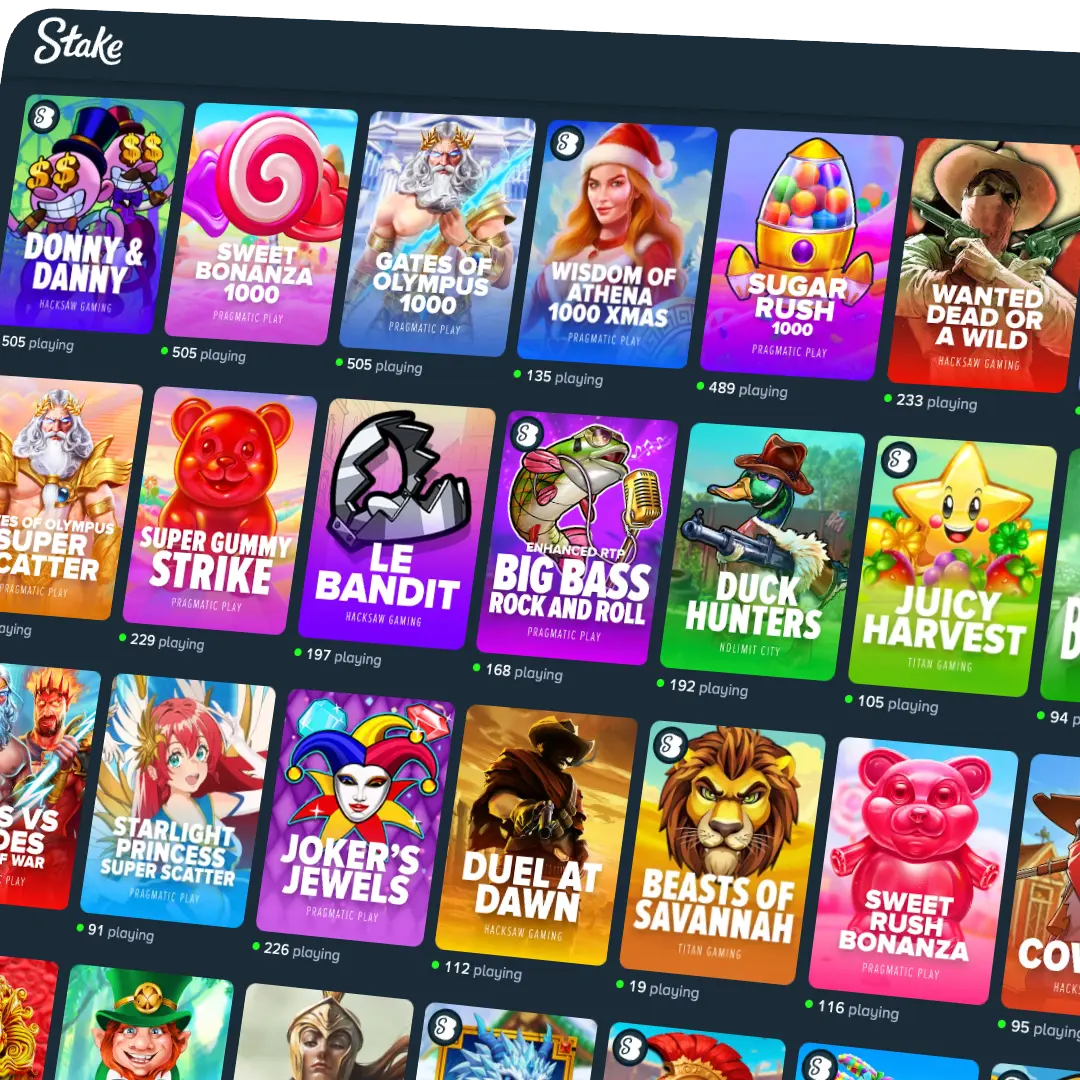 Stake collaborates with over 40 developers to create a diverse library. In fact, we have more than 100 Stake online slots that are exclusively made for our platform. The casino carefully selects providers based on several factors, like reputation, licensing and quality of their games. This helps create a top-drawer collection that can entertain you throughout the year.